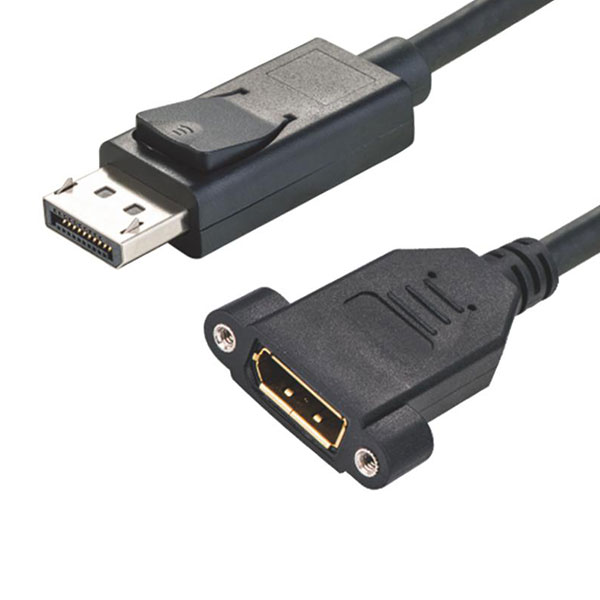 High Quality DisplayPort Male to Female Panel Mount Cable is perfect for combining two DisplayPort cables to achieve connectivity through a panel. This allows the user to provide display connectivity from a source that is contained within a secure location. The cable is short and designed for minimal signal loss. It transmits both audio and video signals from your computer to a monitor for video streaming or gaming. Supports video resolutions up to 4K (3840×2160, Ultra HD) and 1080P (Full HD), and flawless audio pass through for uncompressed digital 7.1, 5.1 or 2 channels. Built to DisplayPort 1.2 standards, this cable meets the requirements of high performance applications. High quality materials and construction ensure a lifetime of dependable performance. Fully-shielded conductors provide complete immunity to EMI/RFI interference, and 24-K gold plated connectors ensure superior signal transfer.