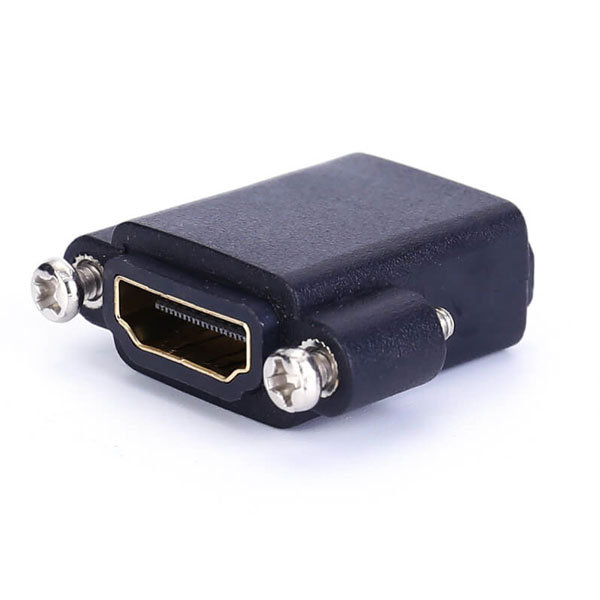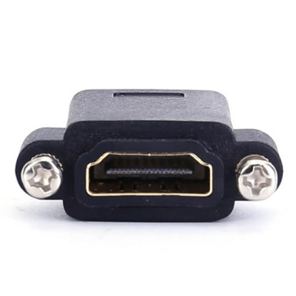 High Quality HDMI Female to Female Panel Mount Adapter is the perfect solution for combining two HDMI cables to achieve connectivity through a panel. This allows the user to provide display connectivity from a source that is contained within a secure location. The adapter is designed for minimal signal loss. It supports the video resolutions up to 4K*2K@50/60 (2160p). High quality materials and construction ensure a lifetime of dependable performance. 24-K gold plated connectors ensure superior signal transfer.