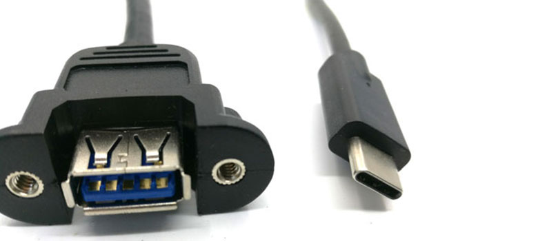High Quality USB Type C Female to 3.0 Type A Female Panel Mount Cable is perfect for extending a USB Type-C connection out to a standard USB 3.0 Type-A connector through a panel. This allows the user to provide connectivity from a source that is contained within a secure location. The cable is short and designed for minimal signal loss. It provides a transfer rate up to 5 Gbps, and easily attaches to any USB device. Foil and braid shielding provide complete immunity to EMI/RFI interference, and the twisted pair construction helps reduce crosstalk thus ensuring high speed, error-free data transfer.